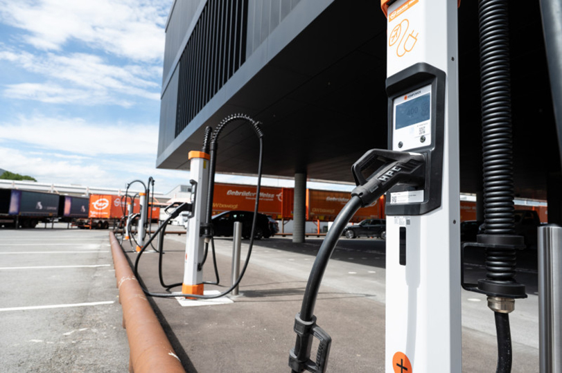 Eigene Ladeinfrastruktur: Da öffentliche Ladeangebote für E-LKW noch unzureichend sind, hat die Firma Gebrüder Weiss AG in Lauterach ein eigenes Lade- und Energieversorgungssystem aufgebaut. Zwei Trafostationen mit je 1’600 kVA versorgen bis zu 16 Schnellladepunkte, von denen acht bereits aktiv sind. Die Energie stammt aus der firmeneigenen Photovoltaikanlage oder aus zertifiziertem Ökostrom.